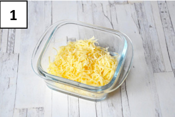 Выложи тёртый сыр в тарелку,
